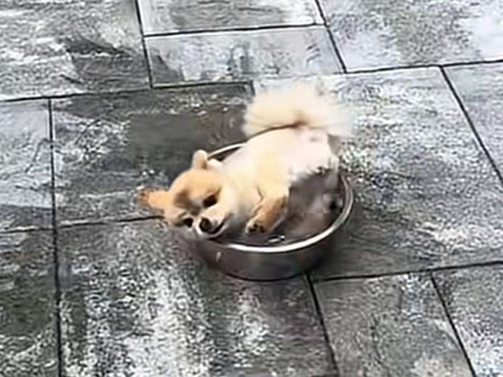 専用プールには目もくれず 水用ボウルにこだわるポメラニアン