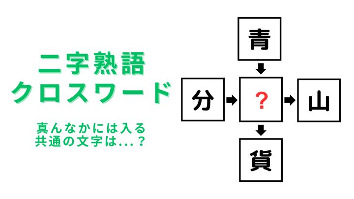 【二字熟語クロスワード】真んなかに入る漢字は?6秒でわかる?