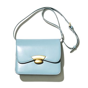 ルーズな服装の引き締めや、コンサバ感の軽減など、スタイリングの調整役として活躍するミニバッグ。難点と思われがちな収納力の低さを感じさせない“マチのある形”に注目。