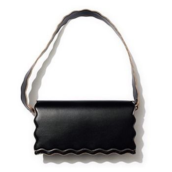 黒スカラップバッグ(10.5×24.5×6)/TSURU By MARIKO OIKAWA 黒のバーハンドルで、シンプルなのに美術品のようなたたずまい。肩にかけたときのハンドルが服のデザインの一部に。