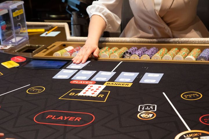 要するに、この場合プレイヤーには最初「4」と「J(ゼロ扱い)」が配られ、点数としては4。バンカーには「2」と「8」が配られ、点数としては0。双方に3枚目のカードが配られる法則が発動されたので配布され、結果どちらにも「A(点数としては1扱い)」がきたので、プレイヤーの点数は5、バンカーの点数は1で、プレイヤーが勝利。