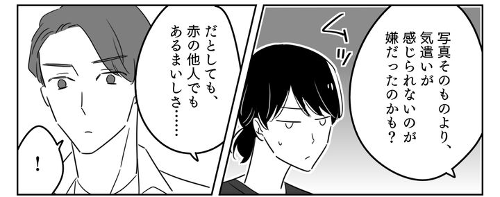 私は義妹のコメントに対し、「たかが家族写真が見切れていただけなのに大げさ」だと思っていました。しかし夫の思わぬ指摘に初めて気づかされる部分も多く、これまでの自分の考えが足りていなかったと感じさせられました。