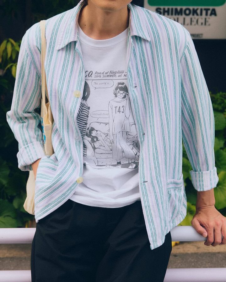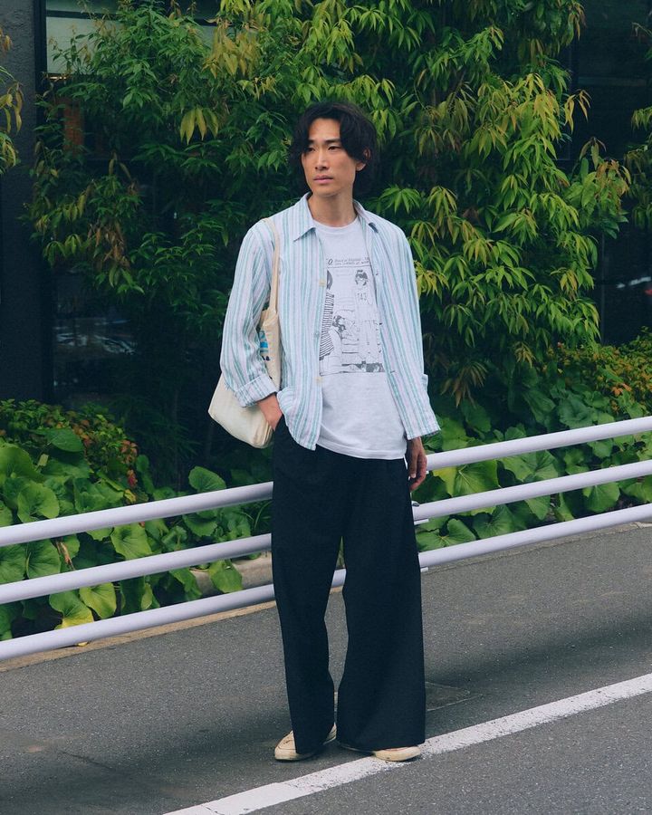 今日の着こなしポイント:テーマは「新潟愛!!!」。私の地元・新潟を拠点に活動している、推しアイドル「Negicco」のライブTシャツをメインに、学生の頃に古着屋で一目惚れしたパジャマシャツを羽織ってみました。トートバッグは生まれ故郷の「津南町」の日本一の河岸段丘のイラストが描かれたお気に入りのアイテムです。