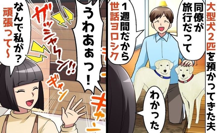 「世話はヨロシク!」勝手に大型犬2匹を預かってきた夫。丸投げされ頭にきた私は…夫のしつけを決行!