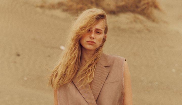 軽やかな陰影をつくる多色の糸が、ベストの構築的なフォルムに奥行きをプラス。幅のあるウエストリボンで絞れば、ジャケットにはない女性らしさと洒落感を同時に得られる。やや長めの丈も、体のラインを拾いすぎず、パンツスタイルをスマートに引き締める役割に。