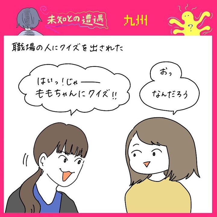 こんにちは!Instagramで日々の暮らしを漫画で紹介している、Web漫画家のmomoです。今回は、同僚から突然「九州の県を9つ言ってみようクイズ」を出題されたお話。賢明なるみなさんならもうお分かりですよね?九州だからと言って9県あるわけではないことを!さて、同僚の真意は一体なんなのか…まさか天然か!?結末は漫画をご覧ください。