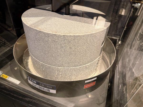 店頭には存在感たっぷりの石臼挽き機械。国産そばの実を毎日店内で挽き、その日の気温や湿度に応じて、水分量やそばの太さを職人さんが微調整しているそう。「そば粉は、小麦粉と違ってそのまま食べられるんですよ。」と教えてくれたのも印象的でした。