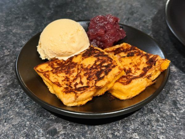 スイーツメニューとして、こんがり焼き上げたフレンチトーストの上にアイスクリームがのった「パリ仕込みのパンペルデュ(フレンチトースト)」(660円)もありました。