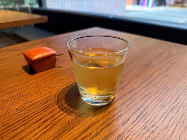 お冷の代わりにいただいたのは、香ばしいそば茶。細部にまでこだわりが光ります。 そして、今回いただいたメニューは、「逸品 大海老の特上天せいろ」と「名物 山椒そば」です。