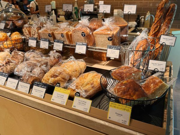 約60種類のパンやペイストリー、ケーキが店頭にずらりと並び、朝食やランチ、カフェタイムまでどの時間帯でも楽しめるラインアップが魅力です。