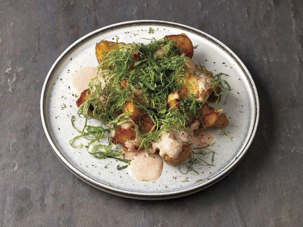 試食した「カリカリポテトサラダ 明太マヨソース」(770円)は、想像していたポテトサラダとは一線を画す一皿。ごろっとした大きめのポテトは外側が香ばしく焼かれ、食べ応え抜群です。明太子の風味がしっかりと感じられ、後を引く濃厚さとコクが印象的でした。