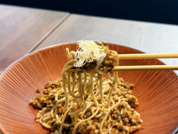 味付けしたひき肉に、山椒のピリッとした刺激が絶妙!鼻に抜ける爽快な香りと、そばののど越しがたまりません。