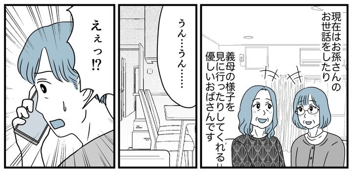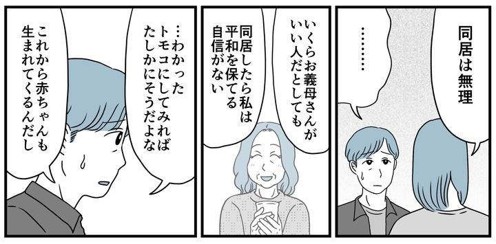 私(トモコ)は、夫のアツシと2人暮らし。40歳のとき仕事関係で出会って結婚しました。アツシにはかつて引きこもっていた時期があるそうです。ただその分、穏やかで人の痛みがわかるアツシを私は尊敬しています。シングルで子ども2人を育てた義母も、結婚して中学生の息子がいる義妹のナツキさんも、私たちの結婚を祝福してくれました。妊娠を報告すると、義母は「初孫みたいなもの」と言って大喜び。しかしその場にいたナツキさんの表情が私は少し気になったのでした。