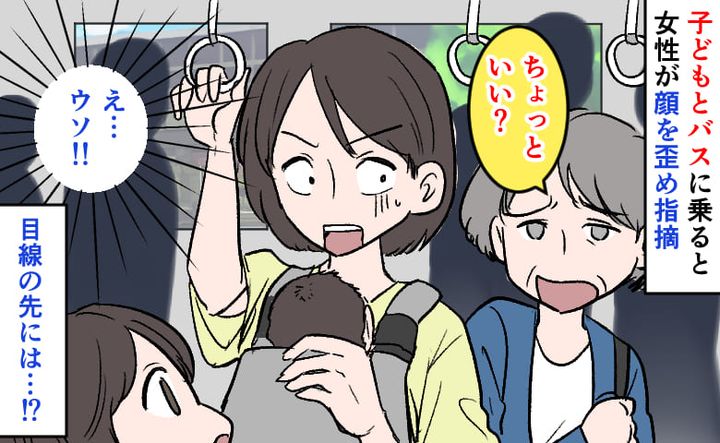 「ちょっといい?」子どもとバスに乗って2駅、女性が顔を歪め指摘。まさかの言葉に赤面!目線の先には…!?
