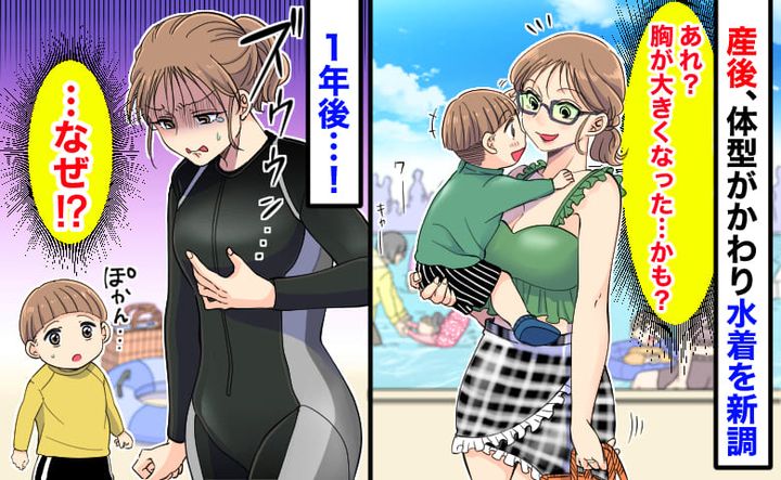 「胸が大きくなった?」産後、体型がかわり水着を新調。1年後、競泳水着を購入し胸元をガードしたワケ
