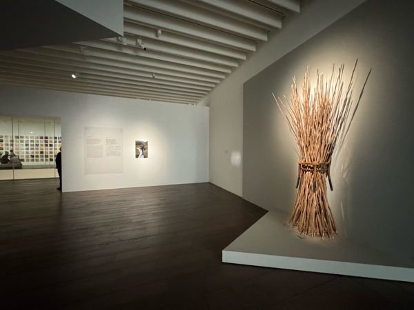 ジュリー・ゴフ《1840年以前に非アボリジナルと生活していたタスマニア出身のアボリジナルの子どもたち》は、植民地期に記録から消された子どもたちの存在を、ティーツリーを用いて静かに可視化する作品です。記憶と癒やしの象徴でもある自然素材を通じて、忘れられた歴史へのまなざしと再生の祈りが込められています。