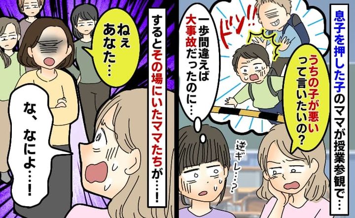すると次の瞬間、近くで話を聞いていたCちゃんのママが「Aくんママ、私あの日娘から話を聞いたけど、Bくんは何もしていないのにAくんがふざけていきなりBくんを押したそうよ。まずは、謝るのが先じゃない?」と援護してくれたのです! また、それに続いて他の保護者たちも「うちの子も見たって言ってて……」と次々に話します。注目が一気に集まったAくんママは、バツが悪そうに「あっ……。Aが申し訳ありませんでした」と謝罪し、そそくさと帰って行きました。