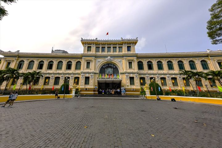 タンディン教会と同じく、フランス統治時代に建設された「サイゴン中央郵便局」。ゴシック、ルネサンス、ネオクラシックなどが融合した壮麗な外観に、電信技術の先駆者であるモールスやといった科学者たちのレリーフも装飾されているなど、ホーチミンにおいて歴史的価値の高い観光スポットです。