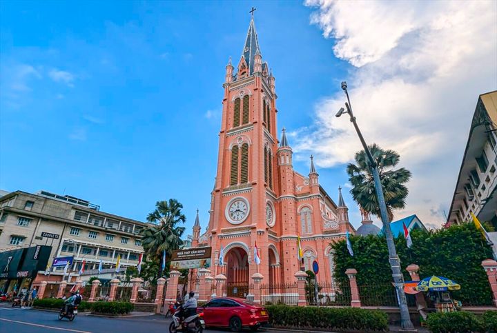 ホーチミン観光でまず訪れたいのが「タンディン教会」。1876年にフランス統治時代に建立し、現在でもローマ・カトリック教会として地元の信者たちに親しまれているホーチミンを代表する観光スポットです。最大の特徴といえば目を引く鮮やかなピンク色の外観。その愛らしさから“ピンク教会”とも呼ばれており、フォトジェニックな映え写真を撮影できる観光スポットとして人気を集めているのだそう。