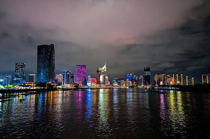 エネルギッシュな熱にほだされたらぜひクールダウンのために甲板へ。目の前には急速に発展するホーチミンの夜景! 聞くことによると、ホーチミンには地震がないということもあって高層ビルの建設ラッシュが進んでいるのだそう。近い将来にはローカルなイメージのベトナムは遠い過去になっているかもしれない、なんて物思いにふけってしまうほどの絶景に心奪われます。