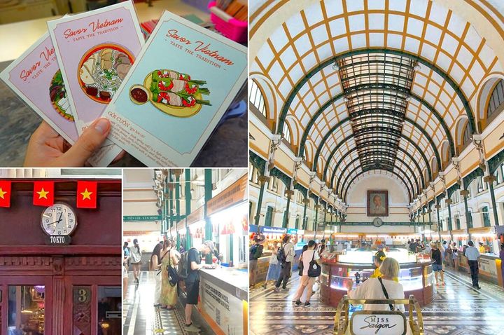 市場内の奥にはローカルな空気が漂う飲食エリアも。フォーやバインミーといったベトナムを代表するローカルグルメが勢ぞろいしており、本場の味を地元の人々と肩を並べながら楽しめすっかり現地に溶け込めるはず。コミュニケーションがとれるのであれば、ガイドブックにはのっていない隠れた名所などの情報を収集できるかも?