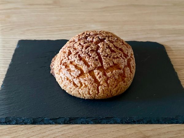 「黒糖メロンパン」(190円・税込) 豆乳で練り込んだ生地はふわふわで優しい甘さ。表面のクッキー生地はザクザクで黒糖のコクがあります。お店で人気No.3なのも頷ける美味しさでした!