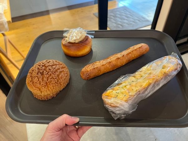 4種類のパンをテイクアウトすることにしました。日によって違う場合もあるそうなので、気になったパンを見つけたら迷わず購入することをおすすめします。