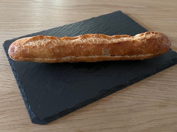 「黒糖ミルクフランス」(190円・税込) パリッと焼き上がったフランスパン生地。黒糖入りのミルククリームがやさしい甘さで、噛むたびに口の中に香ばしさと黒糖の風味が広がります。