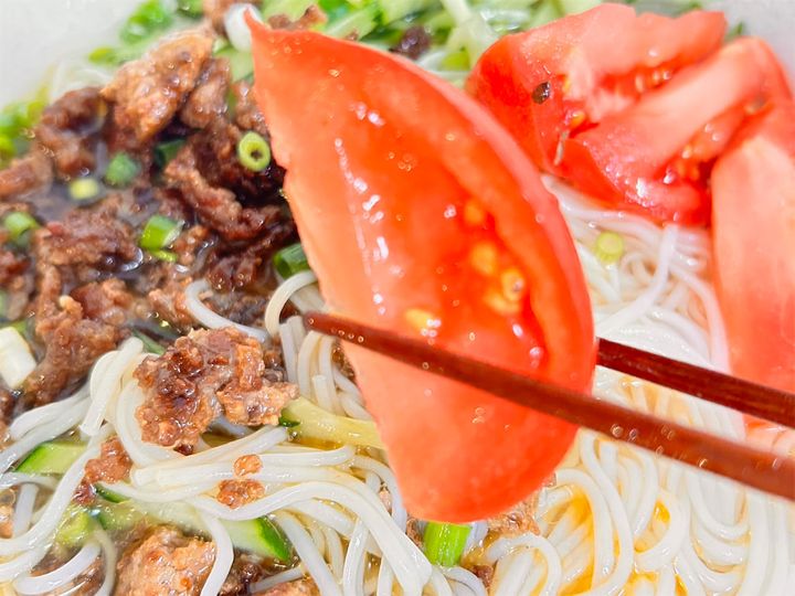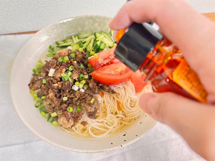 3. 夏に美味いトマトときゅうりをたっぷり添えて「3色そうめん」作ろう!肉みそもジューシーでピリ辛コク旨♡