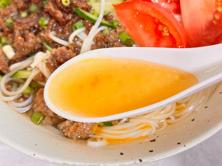 うん、ツルっとしたそうめんに、ピリ辛の肉みそがしっかり絡んでおいしい!