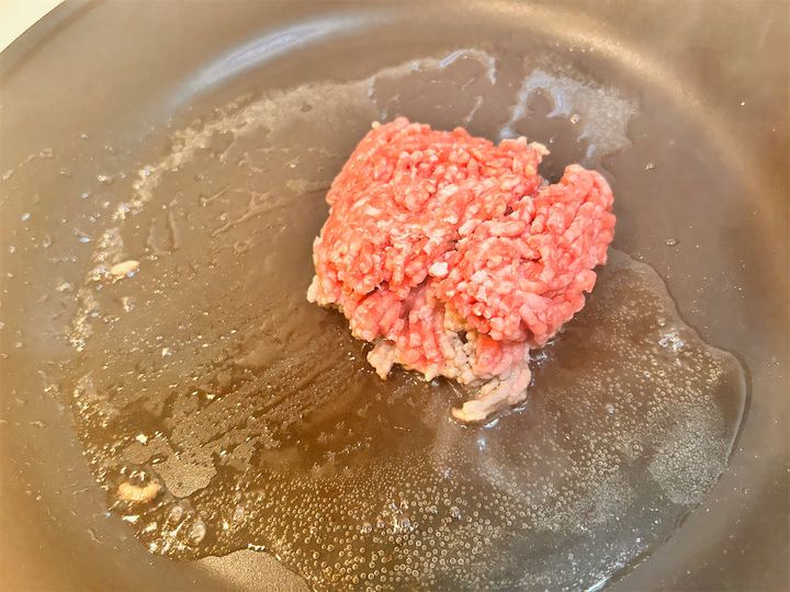 動画を見た感じ合いびき肉に見えたので、今回は合いびき肉を使っていくことにします。