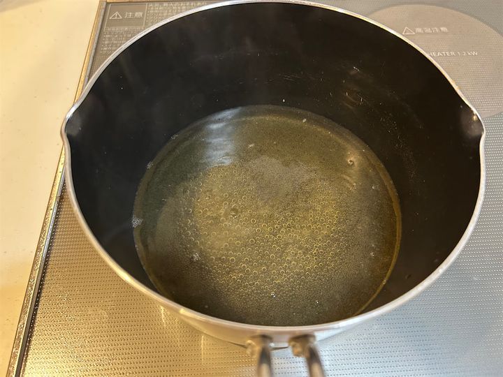 調味料を加えると焦げやすくなるので、火加減は弱火で。