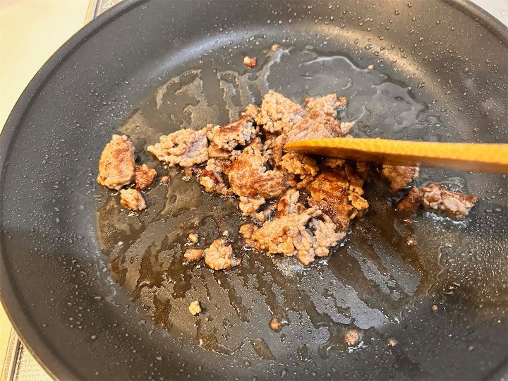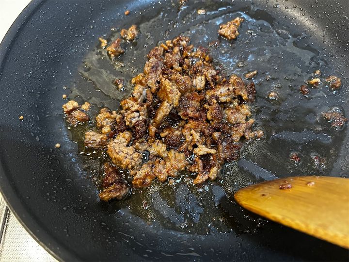ひき肉は粗めに炒めたことで、存在感もあって食べごたえがあります。