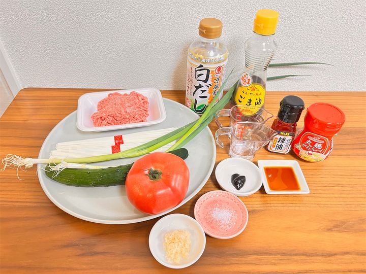 夏に美味いトマトときゅうりをたっぷり添えて「3色そうめん」作ろう!肉みそもジューシーでピリ辛コク旨♡