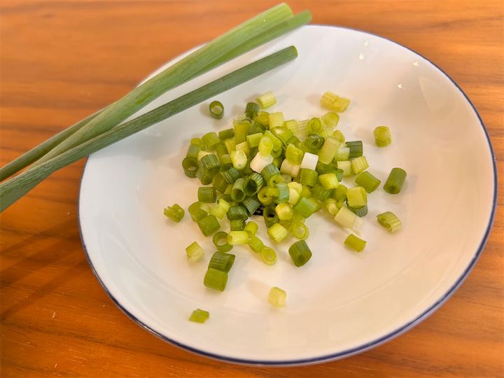 ついでに、仕上げにかける青ねぎも小口切りにしておきます。