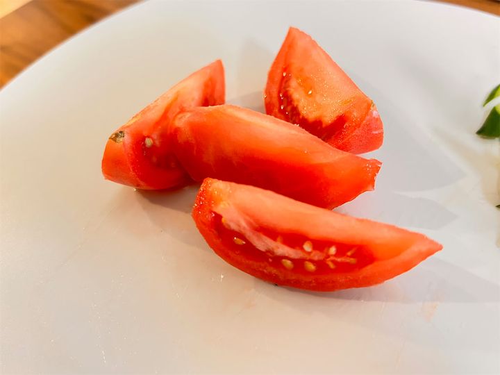 彩りを添えるトマトも、甘酸っぱさがいいアクセントになっていて◎。