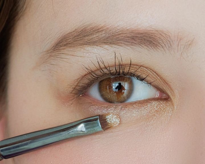 a-2で上まつ毛のきわを埋める。a-3をまぶたの中央と涙袋全体にトッピング。