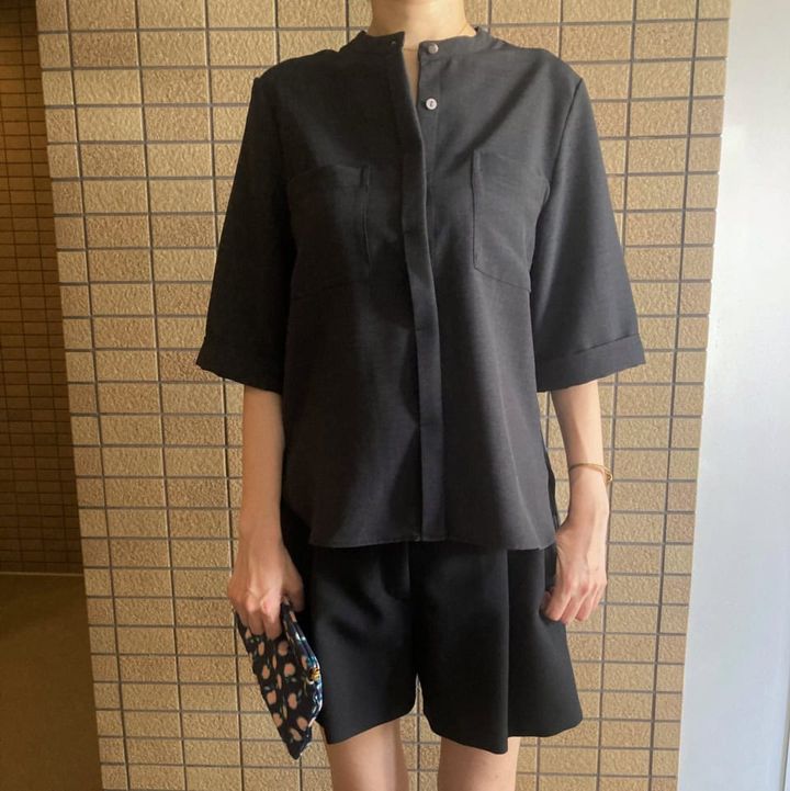 地厚な生地感で下着が透けることもないですし、夜洗濯して翌朝には着て出かけられるくらいすぐに乾く便利さ。筆者は娘の学校行事用などにしていますが、写真のようにショートパンツと合わせれば、真夏のちょっとしたお食事などにも行けちゃいます。高見えするブラウス、これ超オススメです!