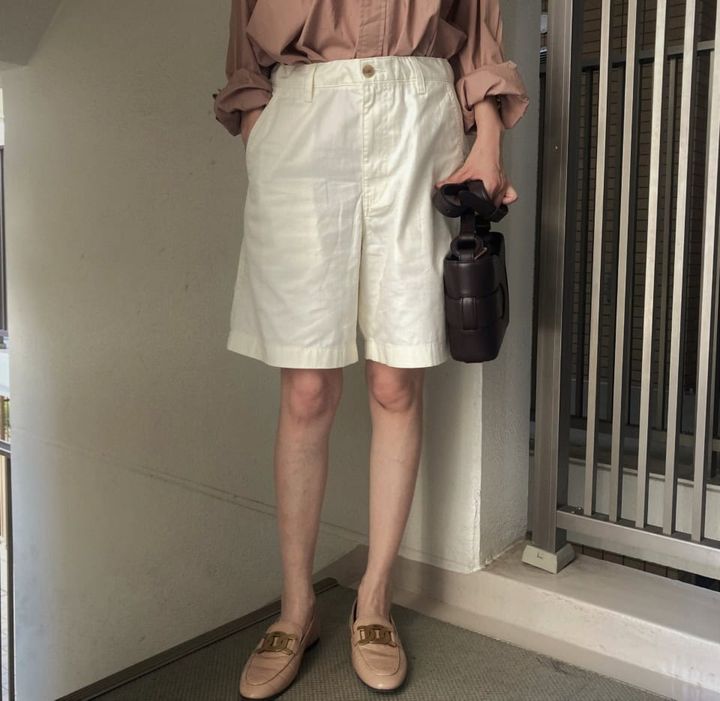 ショートパンツって大人にとってはなかなか難しいアイテムなので、プチプラでトライできるのって嬉しいですよね。筆者が思う大人のショートパンツ選びのポイントは、ひざくらいまである着丈のものを選ぶこと。スニーカーを合わせようとするとスタイリングの難易度がぐっと上がるので、足元はしっかりとしたローファーもしくはパンプスにするか、サンダルで抜くか。この2点かなと思っています。