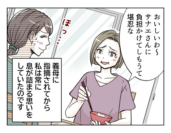 自分が無知だと言うことを知ると、いつものことも「これも違っていたらどうしよう」と思ってしまいますよね。配膳のルールを知らなかったのだから、ほかのマナーもなっていなかったらどうしようと、サナエさんはお義母さんの視線も気になるようになってしまったようです。