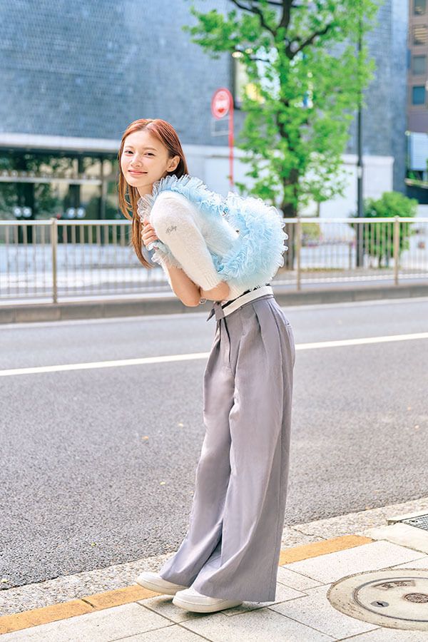 「普段はデザイン性の強いバッグは選ばないけど、夏っぽいペールブルーのチュール素材に惹かれました。夏にたくさん活躍しそう!」