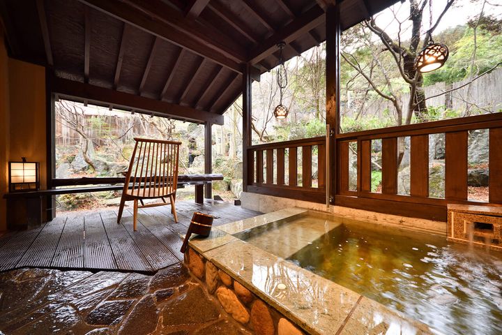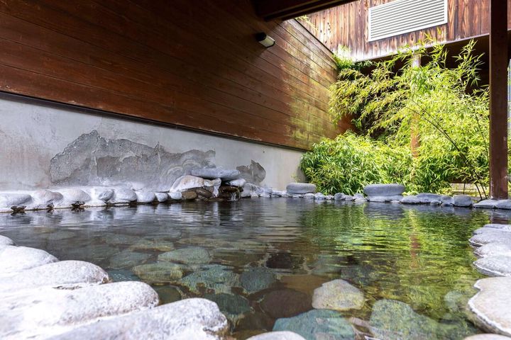 程よくぬるめのお湯で、夏でもゆったり浸かれる露天風呂。庭の景色にも癒される 出典: 美人百花.com