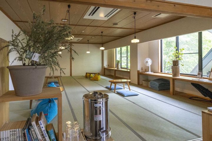 美しい棚田が眼前に広がる「さなざわ㞢テラス」では、露天風呂や貸切サウナを満喫できるだけでなく、カフェ&コワーキングスペースで仕事もできるという、ワーケーションするにはまさにうってつけの空間。