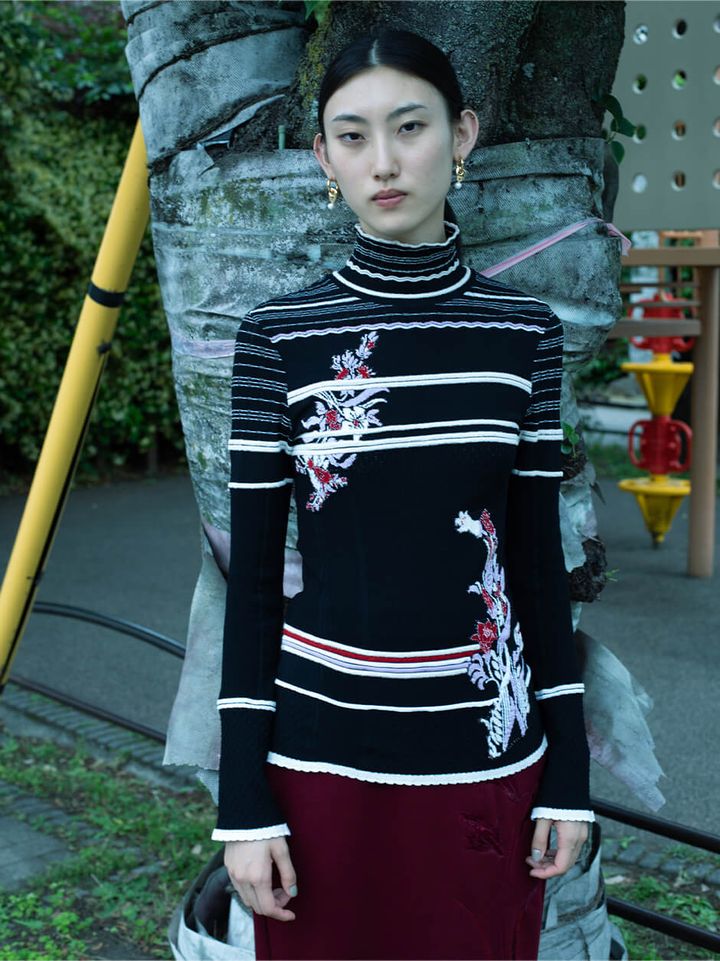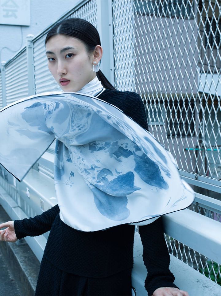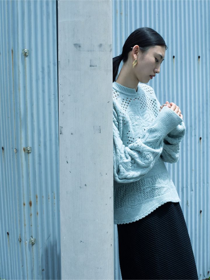 軽やかな視点で捉えた日常の新たな発見が全体のバックドロップとなり、多様な「かたち」から生まれた今季の洋服と共に映し出されることで、親密さと違和感の心地良い調和が表現された。