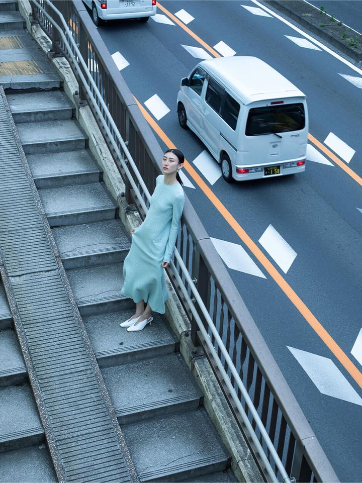 日常性にフォーカスし、日々の営みの中で見過ごされがちなアノニマスな風景に洋服を忍ばせることで、ランウェイとは異なる側面からコレクションに光を当てている。