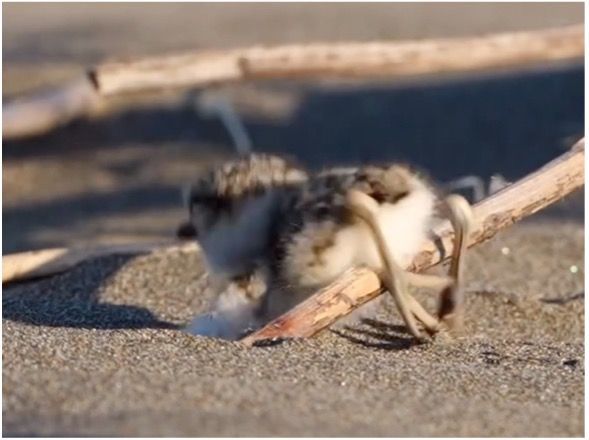 タマゴから生まれて、1時間も経たないというのに、ものすごいスピードで砂浜を走り回り、木につまずいてひっくり返ったり、危うく波にさらわれそうになったりと、〝無鉄砲〟の限りを尽くすこのシロチドリという赤ちゃんの、超貴重な動画をご紹介します。
