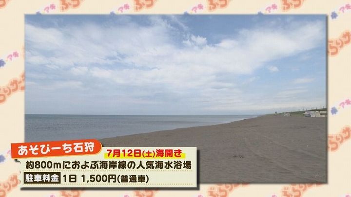 12日に海開きをし、年間約20万人が訪れる、道内屈指の人気海水浴!