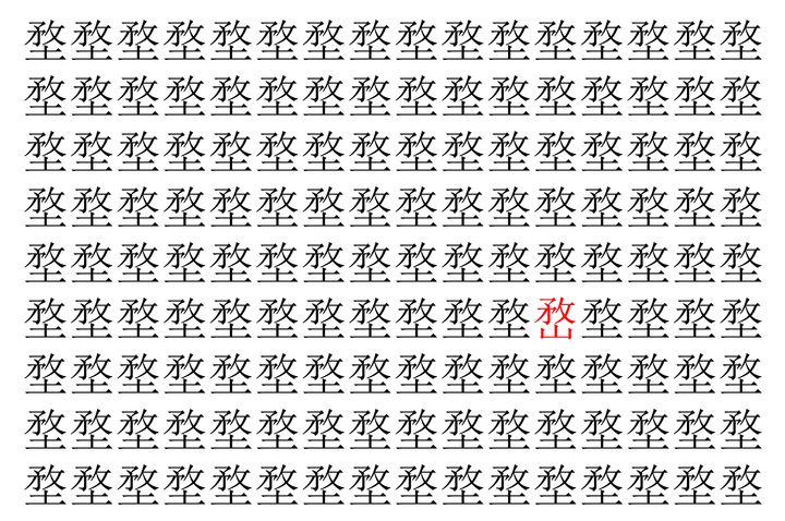 【脳トレ】「堥」の中に紛れて1つ違う文字がある!?あなたは何秒で探し出せるかな??【違う文字を探せ!】