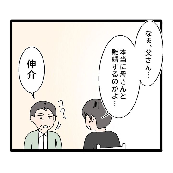 伸介は「なぁ、父さん・・・本当に母さんと離婚するのかよ・・・」と心配そうに義父に聞きました。すると義父は頷き「伸介」と言いました。