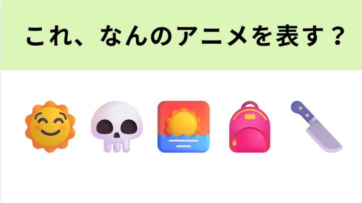 🌞💀🌅🎒🔪」が表すアニメは一体なんでしょうか?